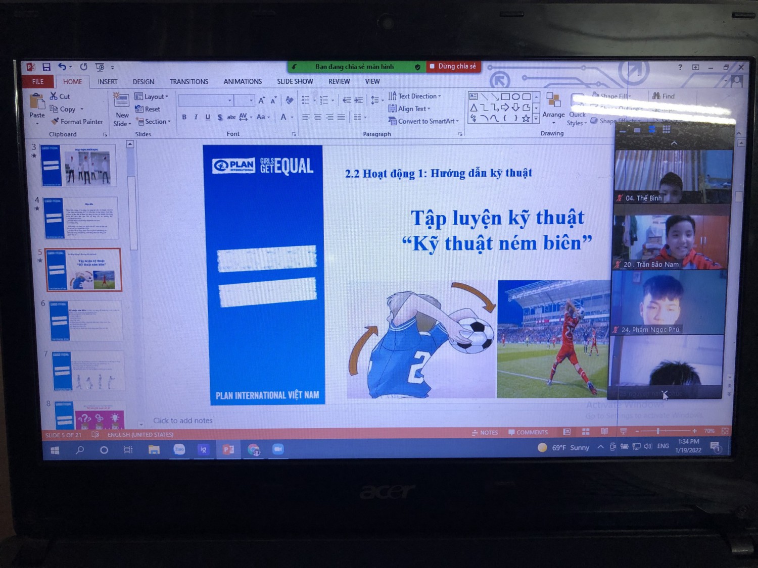 Chiều ngày 19 tháng 01 năm 2022, Trường THCS Dương Nội tổ chức sinh hoạt chuyên đề Online cho các thành viên CLB Thủ lĩnh của sự thay đổi. Chương trình được tổ chức Plan tài trợ. Dưới sự thực hiện của cô Trần Thị Nga – Tổ trưởng Tổ Năng khiếu,- GV thể dục với chuyên đề “ Kĩ thuật cơ bản trong môn bóng đá” và qua
