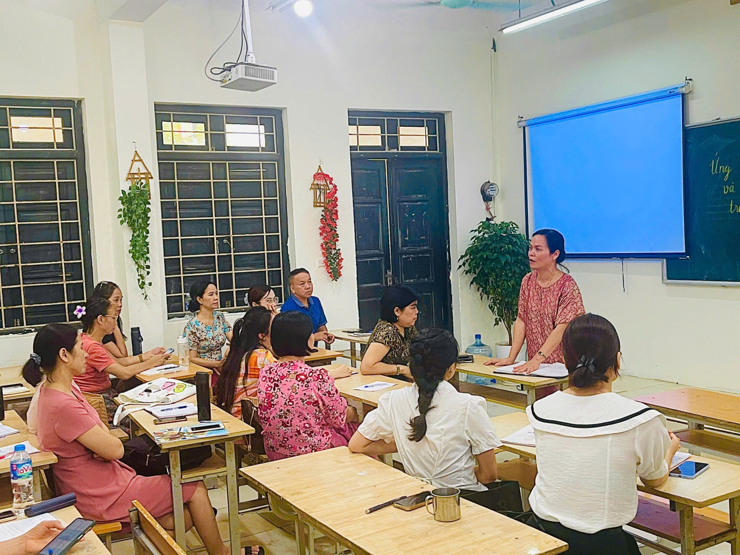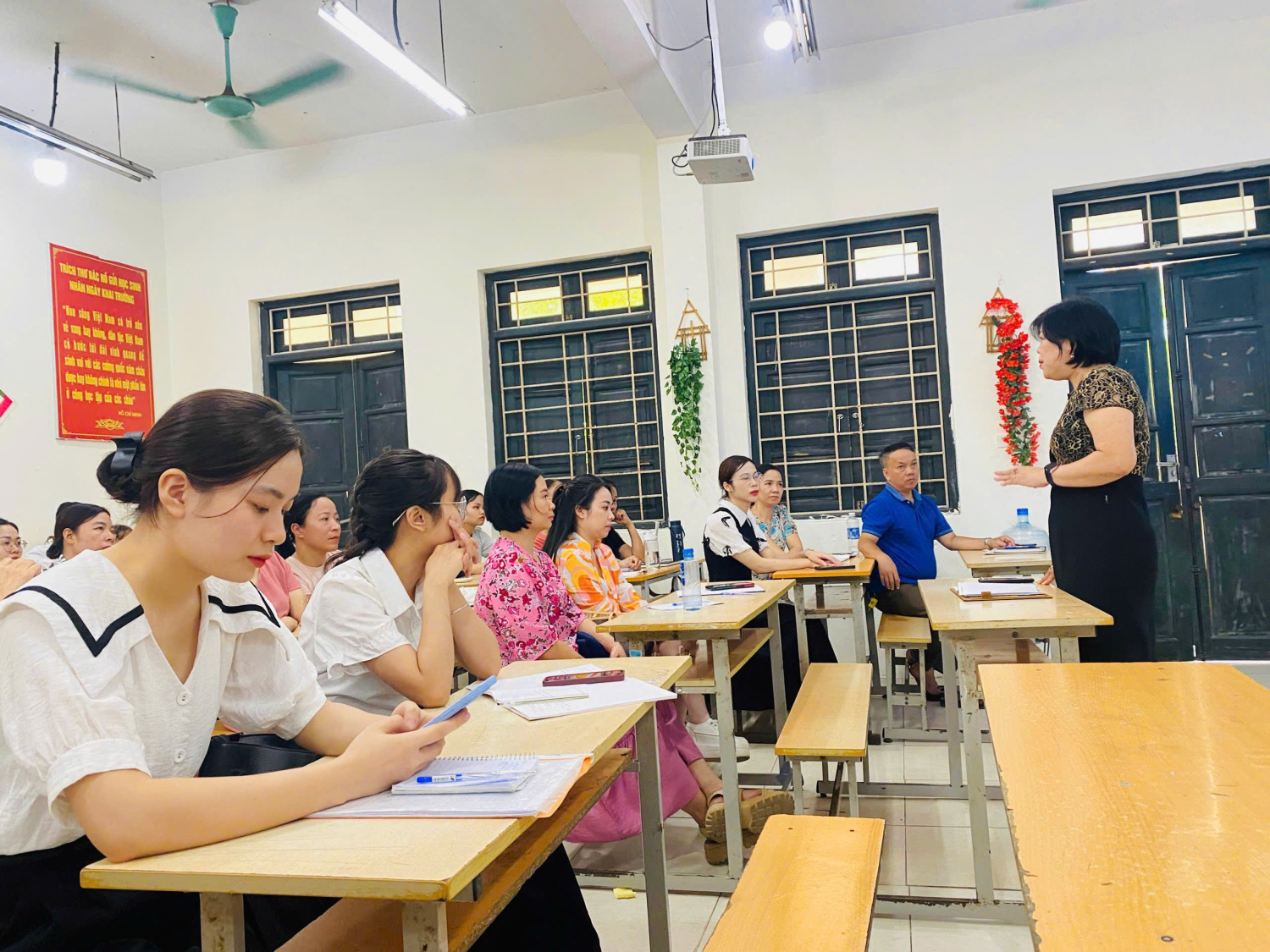 Sinh hoạt chuyên môn là một hoạt động hết sức quan trọng nhằm thực hiện các kế hoạch giảng dạy và bồi dưỡng chuyên môn, nghiệp vụ, năng lực sư phạm cho giáo viên, góp phần tháo gỡ những khó khăn trong quá trình giảng dạy và thực hiện nhiệm vụ năm học. Đặc biệt trong quá trình tổ chức thực hiện chương trình GDPT 2018 và thay sách giáo khoa mới còn gặp nhiều khó khăn vướng mắc thì các buổi sinh hoạt chuyên môn, lên lớp chuyên đề càng mang lại những lợi ích thiết thực. Chính vì vậy, năm học 2024-2025, nhà trường chú trọng SHCM để định hướng cho giáo viên mà trọng tâm là thực hiện Chương trình GDPT 2018.