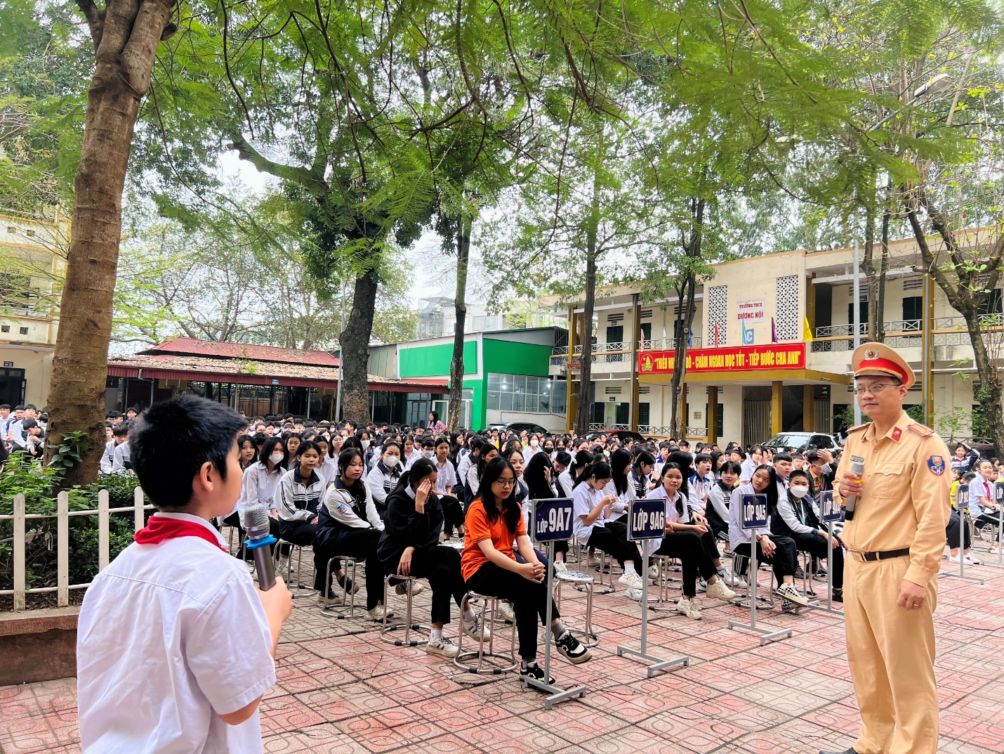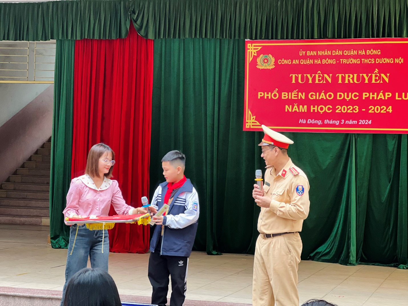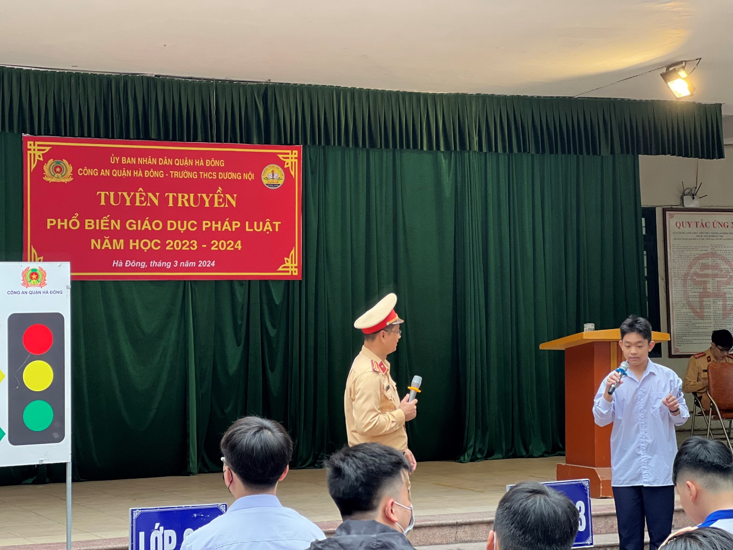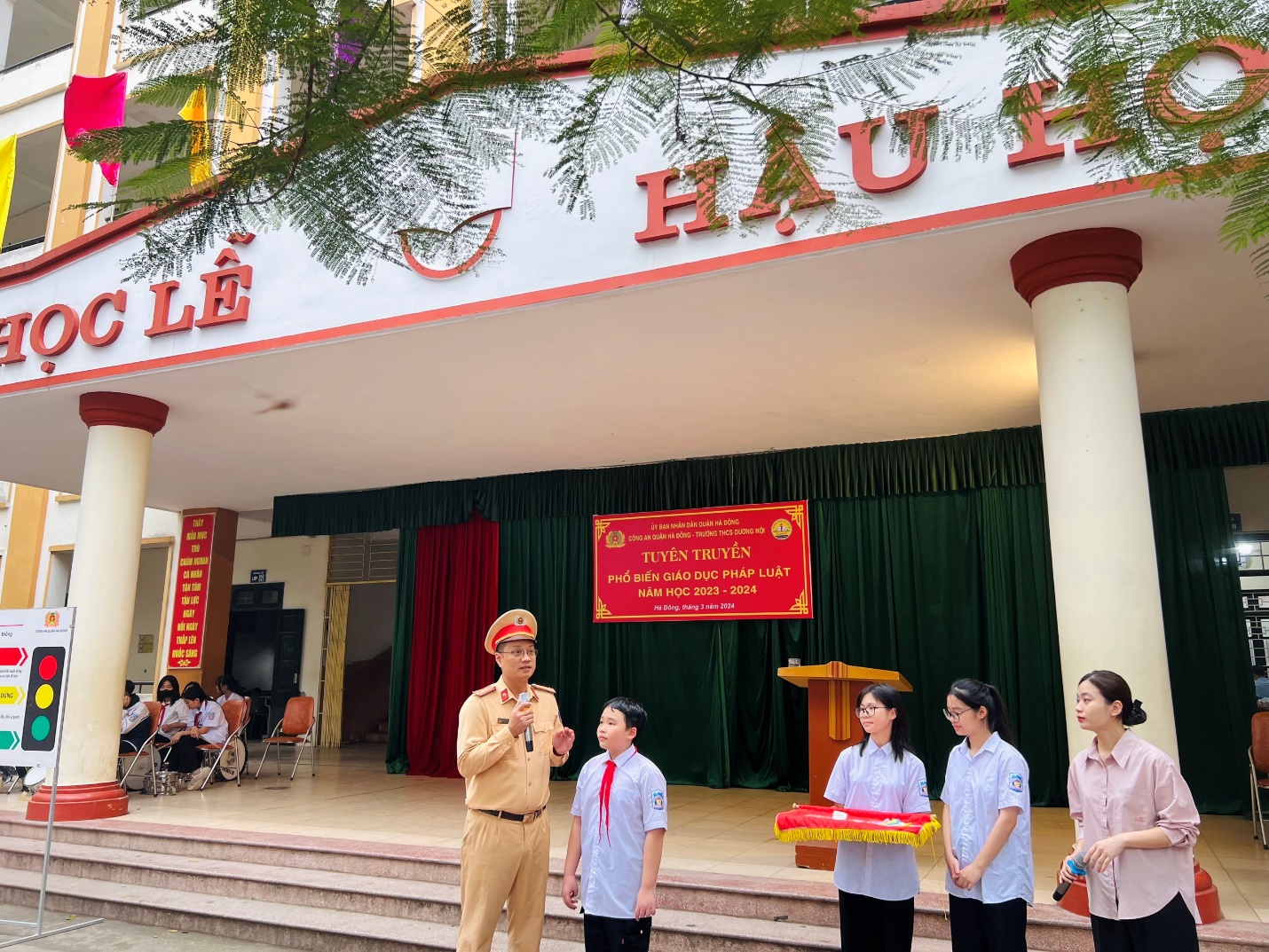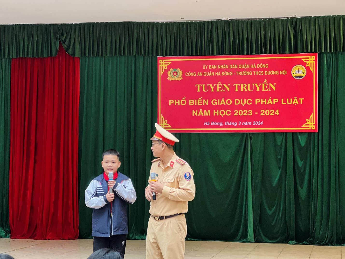 Đẩy mạnh tuyên truyền để tăng cường ý thức về an toàn giao thông , vào ngày 25/03/2024 – Trung tá Trần Thanh Quyết Đội cảnh sát giao thông trật tự quận Hà Đông đã thực hiện tuyên truyền về giáo dục an toàn giao thông cho toàn thể các em học sinh tại trường THCS Dương Nội.