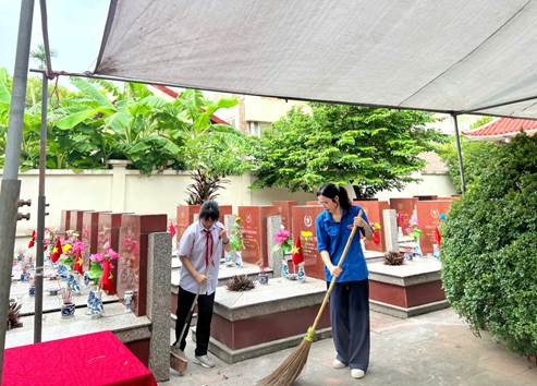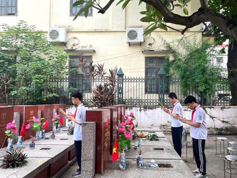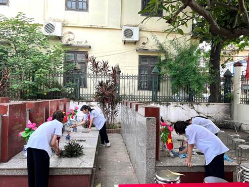 Sáng ngày 26/7, đại diện Ban giám hiệu, các thầy cô giáo cùng các em học sinh tiêu biểu của nhà trường đã có mặt tại Nghĩa trang Liệt sĩ phường Dương Nội để thực hiện hoạt động dọn dẹp, vệ sinh khuôn viên nghĩa trang và thắp nén hương tri ân lên từng phần mộ liệt sĩ. Trong không khí trang nghiêm và xúc động, mỗi người như lắng lại, cảm nhận sâu sắc hơn những mất mát, hy sinh mà các thế hệ cha anh đã trải qua để gìn giữ nền hòa bình hôm nay.