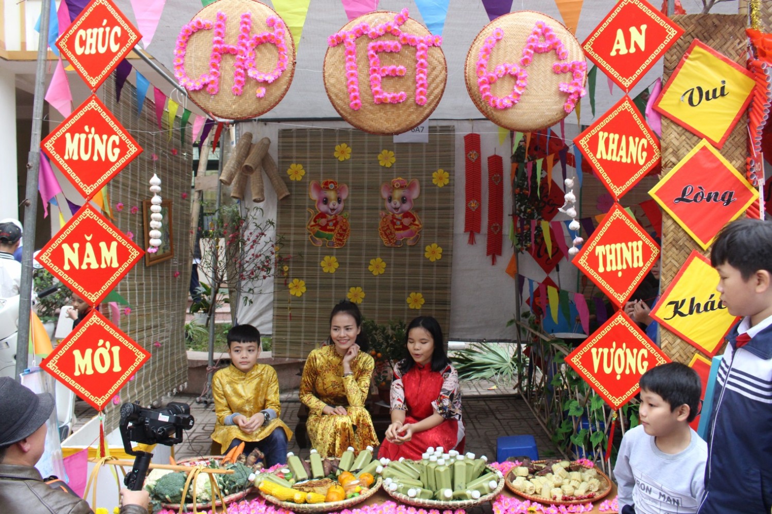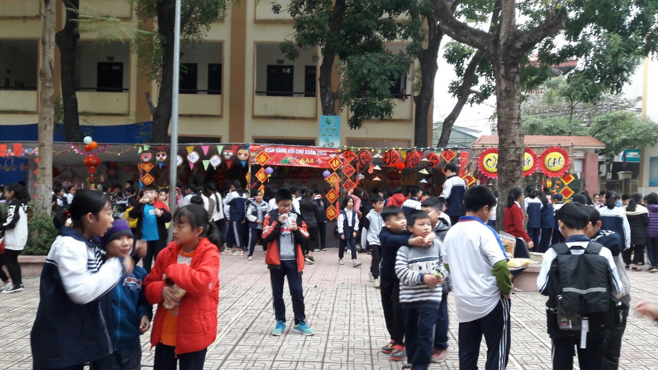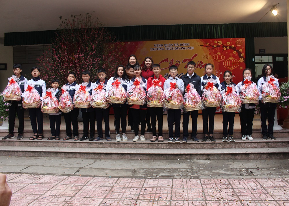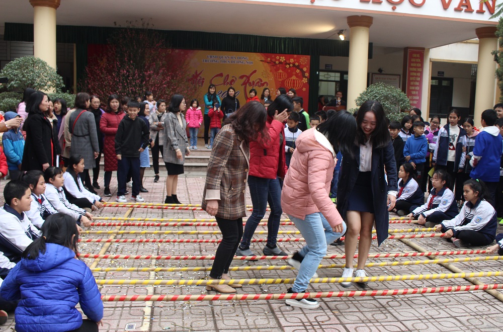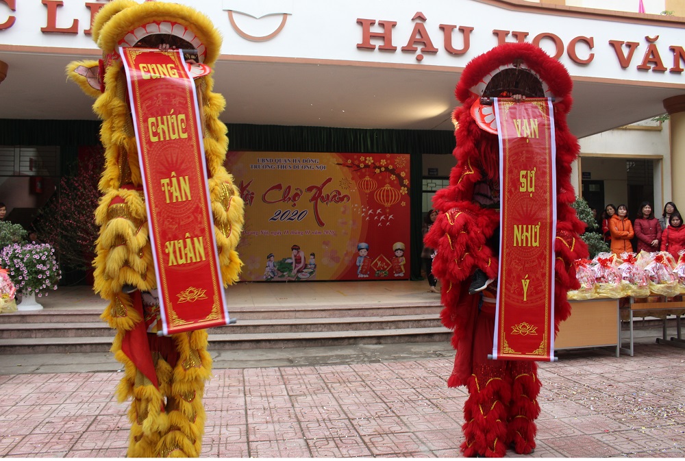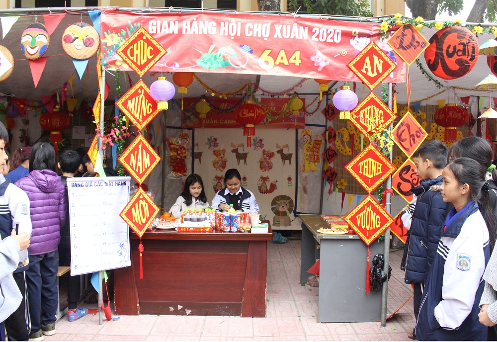 Ngày 18/1, trường THCS Dương Nội – Quận Hà Đông tổ chức chương trình “Hội chợ xuân Canh Tý- 2020” cho các em học sinh với nhiều hoạt động thú vị và hấp dẫn. Lễ hội nhằm tạo điều kiện cho các em được vui chơi, học hỏi sau những buổi học tập căng thẳng và mệt mỏi, đồng thời có vốn hiểu biết về ngày Tết cổ truyền của dân tộc Việt Nam và không khí đón Tết ở nông thôn. Bà Trần Thị Kim Oanh, Hiệu trưởng nhà trường cho biết: “Đây là một hoạt động giúp các em học sinh hiểu hơn về truyền thống của dân tộc, giúp các em thêm tự tin, mạnh dạn trong giao tiếp; phát huy năng khiếu nghệ thuật, thẩm mỹ, ẩm thực, giáo dục, tinh thần tương thân, tương ái, và cũng qua đó nhằm gắn kết mối quan hệ: nhà trường, gia đình và xã hội. Cô Trần Thị Kim Oanh- Bí thư chi bộ, Hiệu trường nhà trường đọc diễn văn khai hội chợ xuân 2020 Tại phiên chợ xuân, các em học sinh được tự tay mình làm ra những sản phẩm ăn uống dưới sự hướng dẫn và giúp đỡ của cha mẹ, thầy cô chủ nhiệm mang tới gian hàng của lớp mình nhằm trao đổi, học hỏi giao lưu với các gian hàng của các lớp khác. Đây là hoạt động trải nghiệm rất thú vị, bổ ích. Ngoài ra, các em còn được tham gia các trò chơi vui nhộn như kéo co, bịt mắt đập niêu, ném bóng . Nhà trường còn mở các gian hàng bày bán những mặt hàng về ẩm thực, thiệp chúc xuân, mời ông đồ về cho chữ đầu xuâ. Tại ngày hội, nhà trường cũng đã trao tặng 59 suất quà cho 59 em học sinh có hoàn cảnh khó khăn, mỗi suất quà trị giá 200 nghìn đồng. Nhấn để phóng to ảnhNhà trường trao quà cho các em học sinh có hoàn cảnh khó khăn Màn múa lân chúc mừng hội chợ xuân. Thầy cô cùng học sinh tham gia tiết mục “ Múa sạp” Nhấ n đ ể phóng to ảnhNhiều gian hàng với các màu sắc đa dạng được các em học sinh bày bán