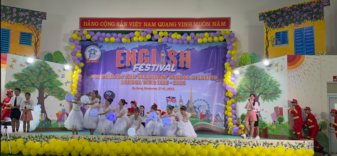 Ngày 06/12/2023, THCS Dương Nội đã tham gia Festival tiếng Anh quận Hà Đông. Đây là sân chơi bổ ích giúp các bạn học sinh nuôi dưỡng tình yêu, niềm say mê học ngoại ngữ đồng thời rèn luyện bản lĩnh tự tin trên sân khấu.