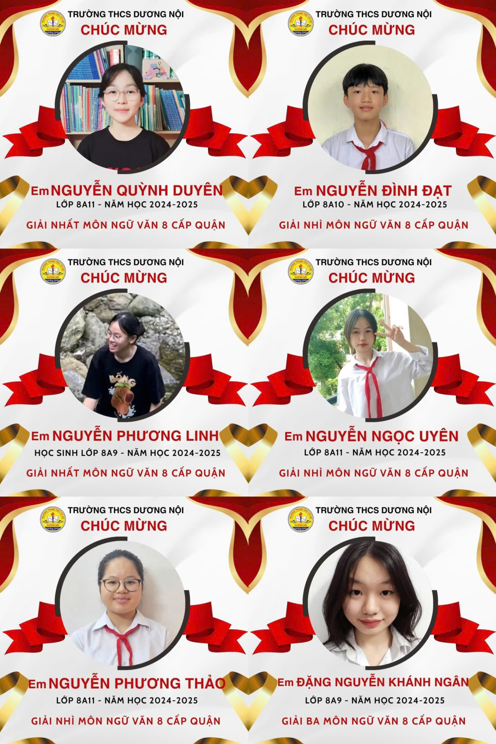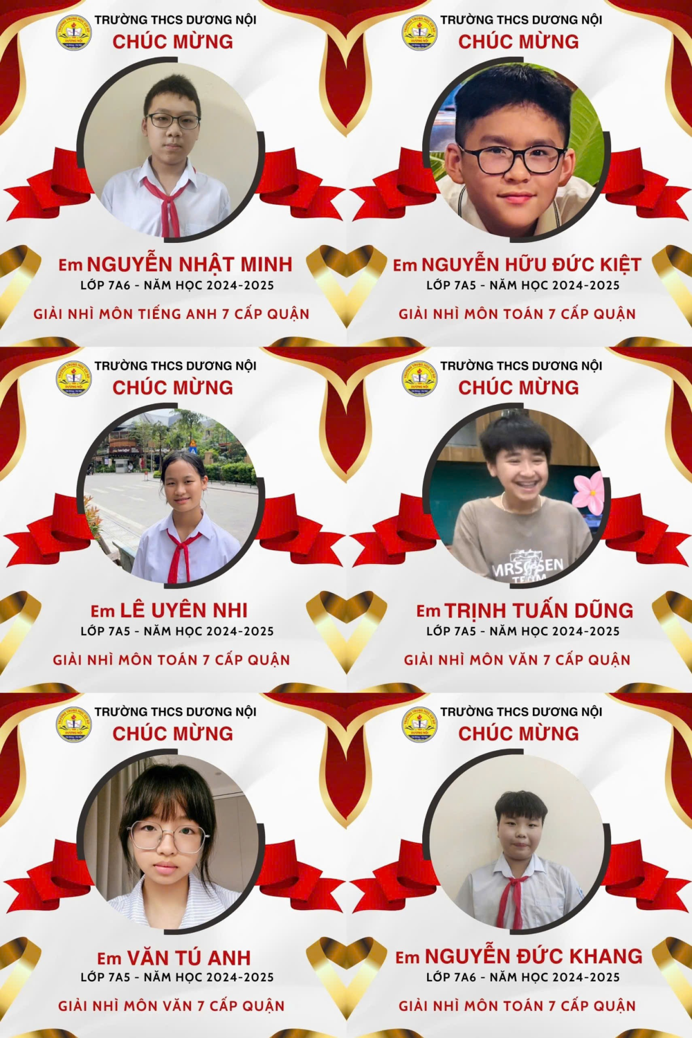 Trường THCS Dương Nội xin gửi lời chúc mừng nồng nhiệt nhất đến các em học sinh được tuyên dương. Mong rằng các em sẽ tiếp tục nỗ lực, phát huy tinh thần hiếu học, không ngừng rèn luyện để đạt được những thành công lớn hơn nữa trong tương lai. Nhà trường cũng xin trân trọng cảm ơn các thầy cô giáo đã tận tâm dìu dắt, các bậc phụ huynh luôn đồng hành và ủng hộ trong quá trình học tập và rèn luyện của các em.