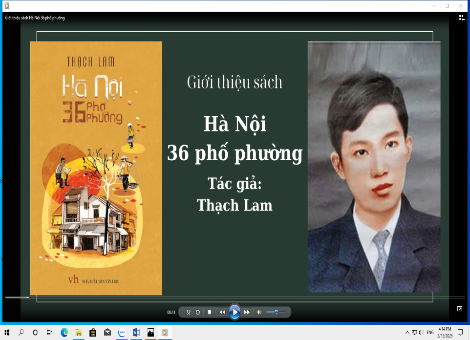 Em tên là Lưu Vân Nhi, học sinh lớp 8A10, trường THCS Dương Nội. Hôm nay, mình xin giới thiệu với các bạn cuốn sách: “Hà Nội băm sáu phố phường” của nhà văn Thạch Lam.