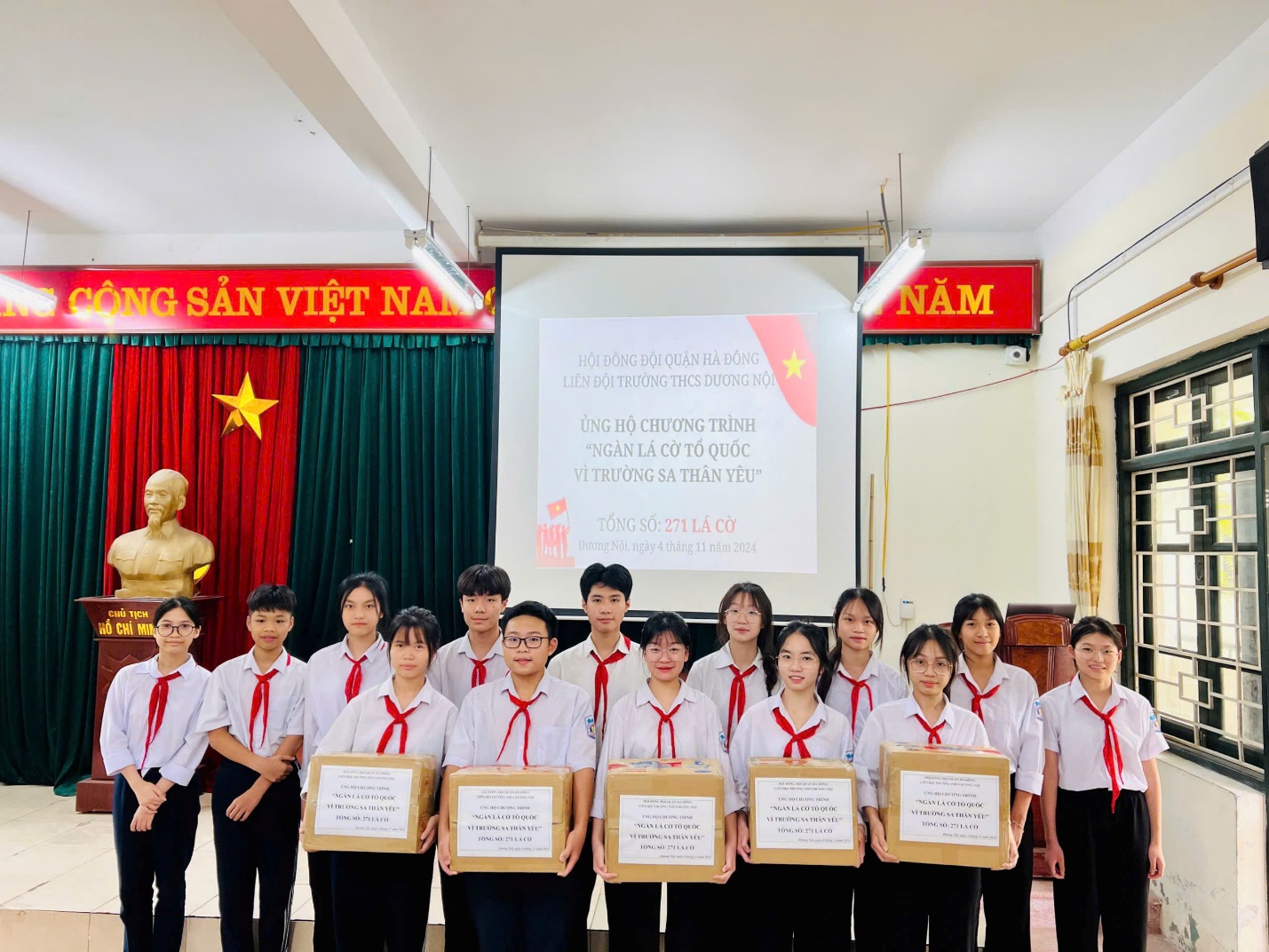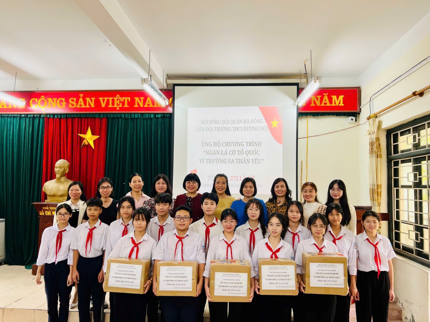 Trong thời gian ngắn phát động trong toàn trường, chương trình đã có sức lan tỏa mạnh mẽ đến hầu hết các chi đội của Nhà trường và hưởng ứng của các bậc phụ huynh. Ngày 4/11/2024, Trường THCS Dương Nội đã tiếp nhận và trao tặng về chương trình 271 lá cờ Tổ quốc gửi tới Trường Sa thân yêu.