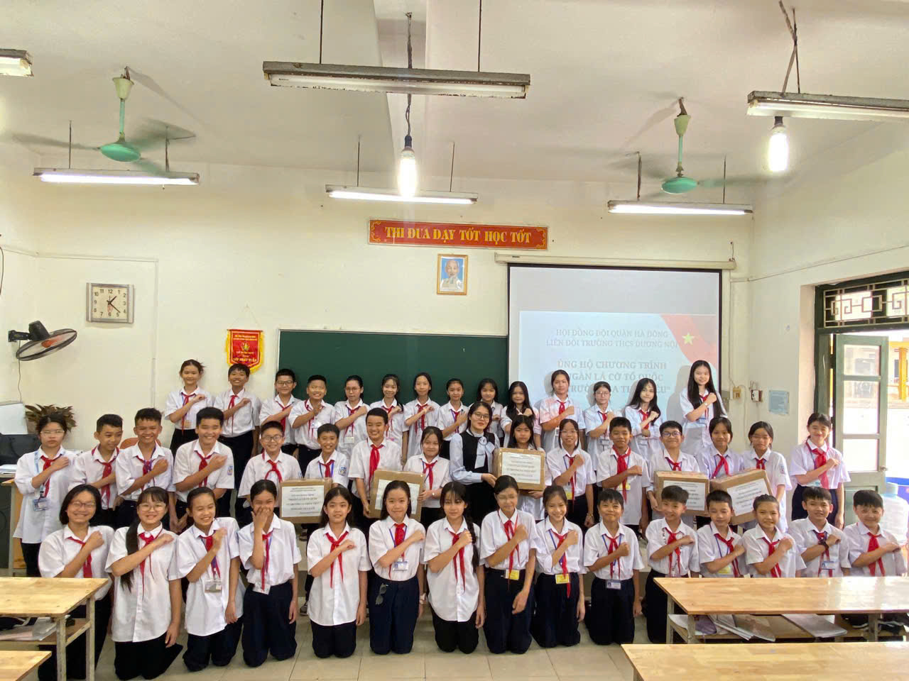 Bên cạnh đó, đây cũng là cơ hội thanh thiếu nhi Trường THCS Dương Nội gửi gắm tấm lòng, tình cảm đến các chiến sĩ và ngư dân nơi đảo xa. Những lời thăm hỏi, động viên, những món quà nhỏ nhưng ấm áp nghĩa tình đã góp phần làm dịu đi những khó khăn, thử thách mà họ phải đối mặt hàng ngày.