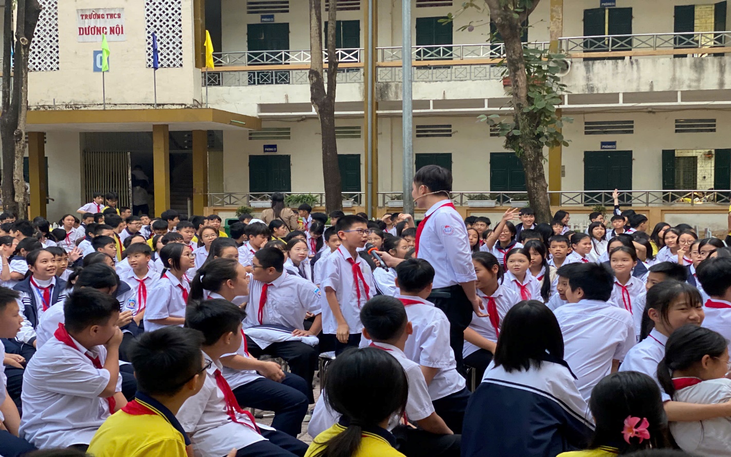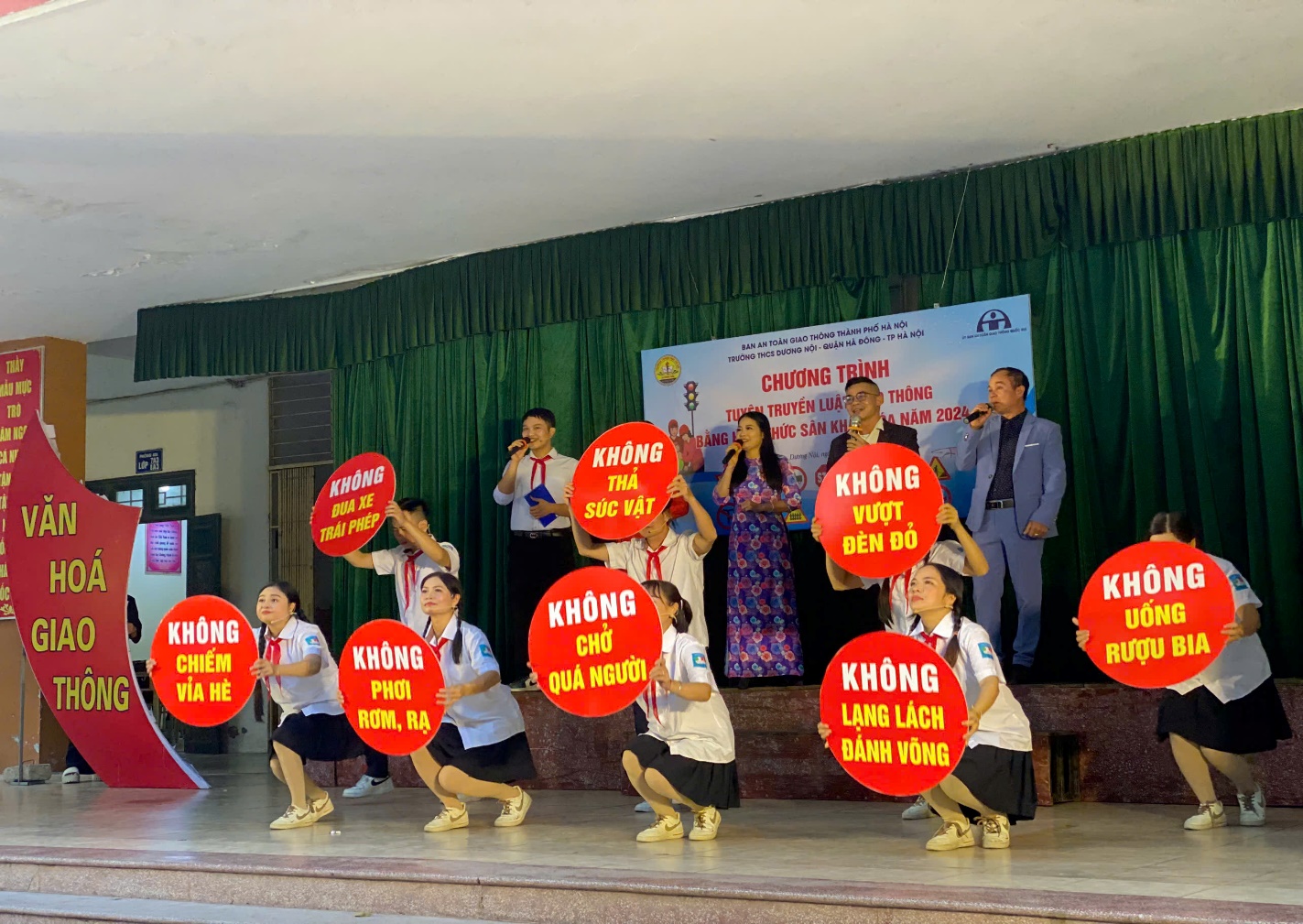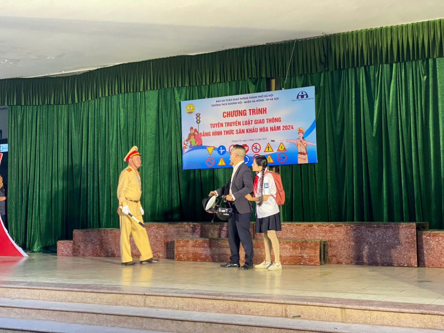 Nhằm nâng cao ý thức chấp hành luật an toàn giao thông đường bộ cho học sinh khi tham gia giao thông, chiều ngày 2/12/2024, Ban an toàn giao thông Thủ Đô kết hợp cùng Nhà hát cải lương Hà Nội đến tuyên truyền cho học sinh về ATGT bằng hình thức sân khấu hóa.
