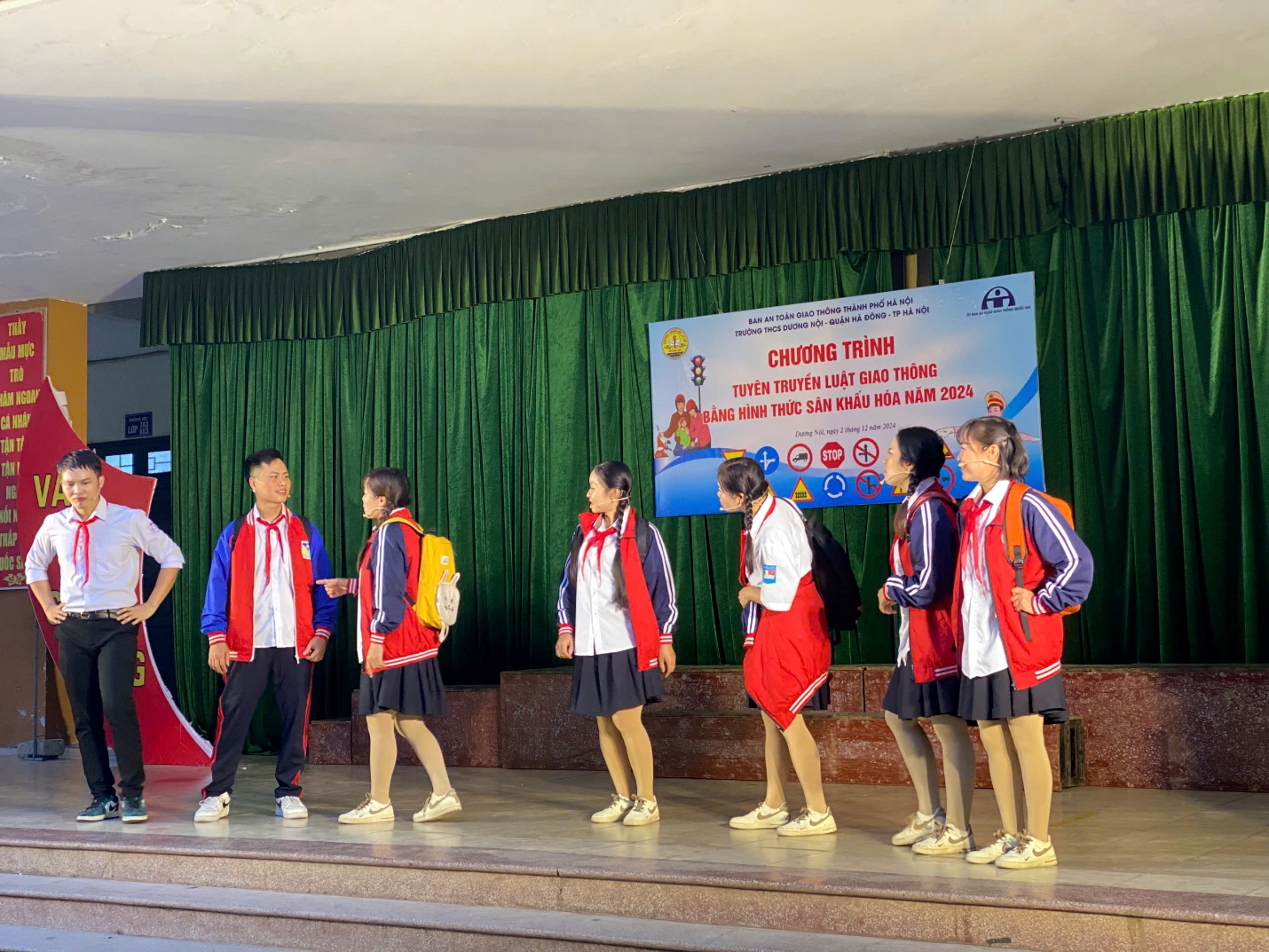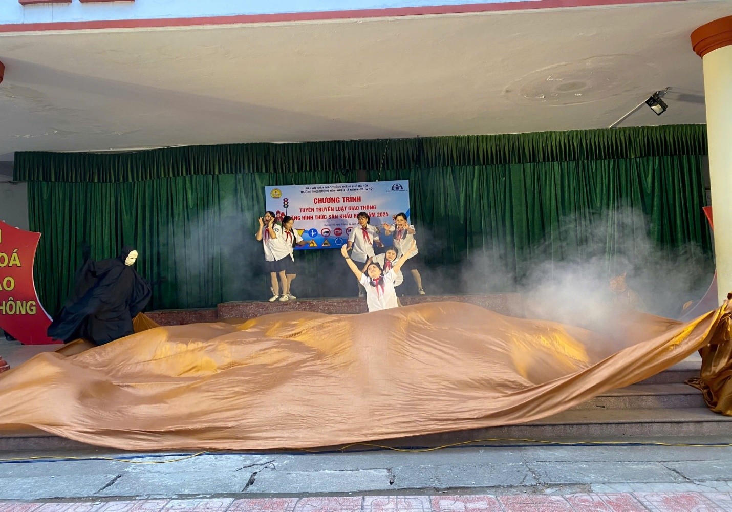 Tuyên truyền an toàn giao thông bằng hình thức sân khấu hóa là một phương pháp hiệu quả để giáo dục cộng đồng về quy trình an toàn giao thông. Sân khấu hóa giúp học sinh hiểu rõ hơn về các quy định giao thông, nhận thức về nguy cơ và biện pháp phòng ngừa tai nạn giao thông. Bằng cách sử dụng các hình ảnh, âm thanh và kịch bản sống động, sân khấu hóa tạo ra một trải nghiệm thực tế và gần gũi, giúp thông điệp dễ dàng tiếp cận và ấn tượng hơn với người xem. Qua đó, trang bị thêm nhiều kiến thức, kỹ năng thực tiễn để giúp các em chấp hành tốt Luật Giao thông đường bộ, bảo đảm an toàn mỗi ngày đến trường.