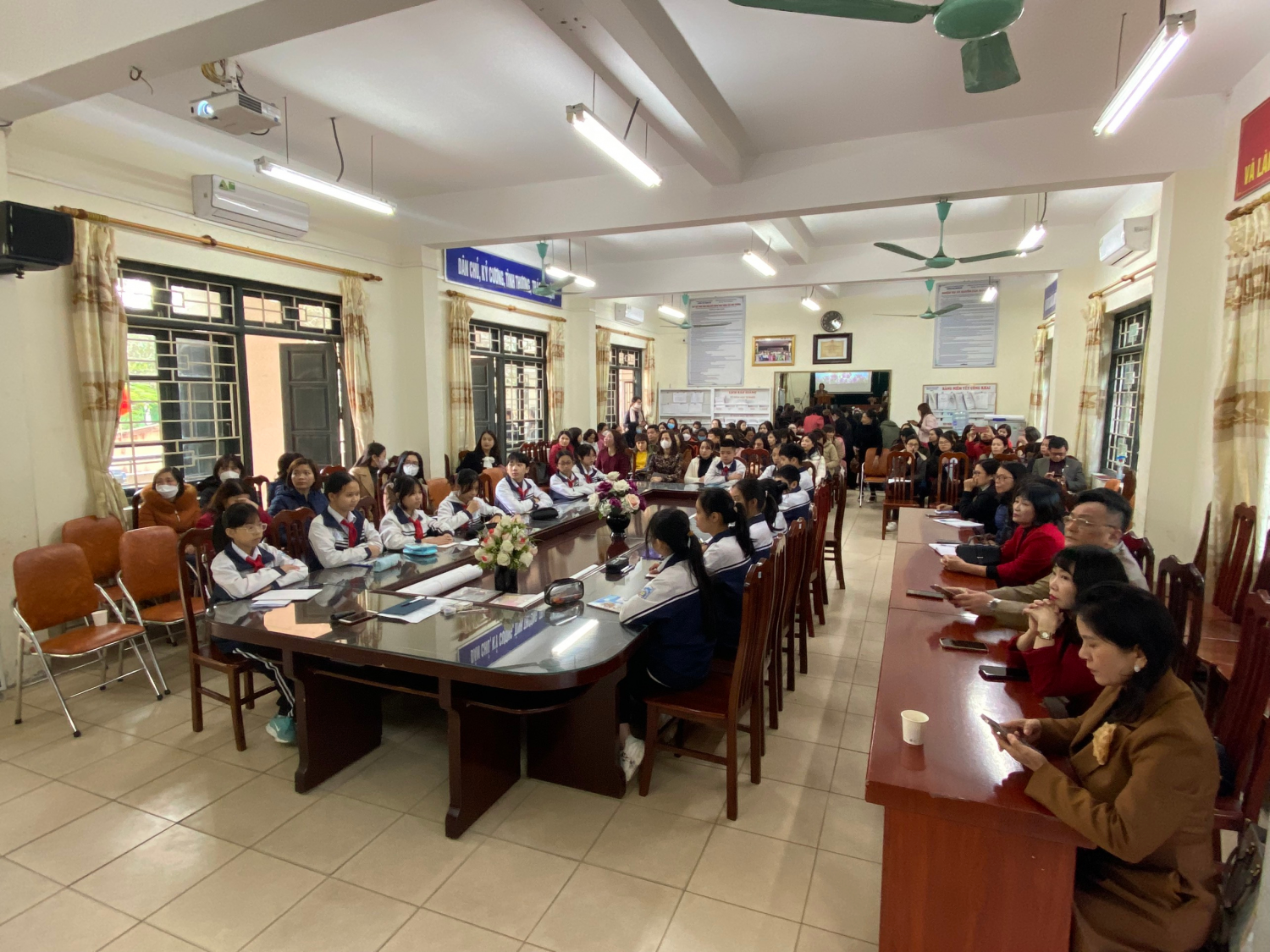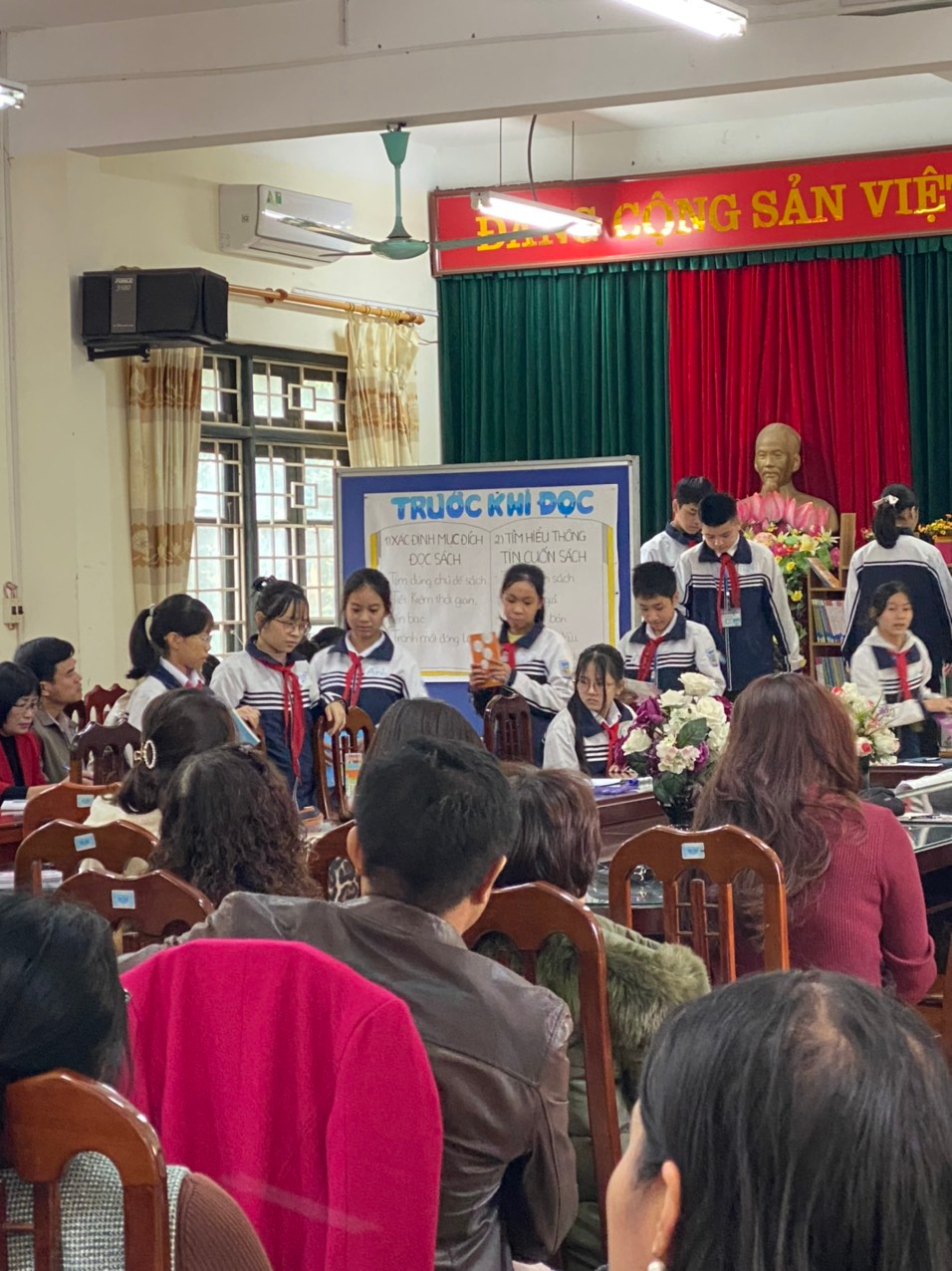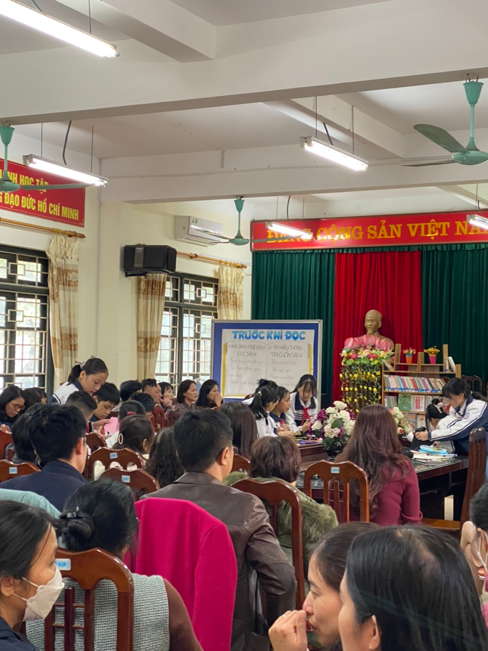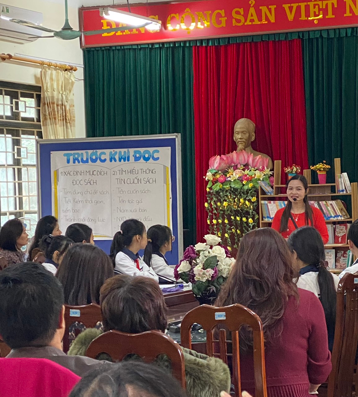 Trong cuộc sống, Sách là kho tàng tri thức quan trọng đối với tất cả mọi người bởi sách ghi lại những kiến thức, những giá trị của cuộc sống mà người đi trước đã kiếm tìm, học tập, trải nghiệm và truyền lại cho thế hệ sau. Sách là chiếc chìa khoá vạn năng mở cửa lâu đài trí tuệ và tâm hồn con người, là người thầy siêu việt thắp sáng trong ta nguồn tri thức vô tận, dạy chúng ta biết sống và biết hy sinh; Mọi thành công của con người đều nhờ sự kết hợp của kinh nghiệm bản thân với tri thức lĩnh hội được từ việc học trong cuộc sống và trong sách vở. Tuy nhiên, cùng với sự phát triển của công nghệ thông tin, văn hoá đọc đang bị văn hoá nghe nhìn lấn át. Nhiều bạn trẻ đã đánh mất thói quen đọc sách. Đây là một hiện tượng rất đáng lo ngại bởi nếu không chịu khó đọc sách, con người sẽ trở nên hời hợt, thiếu tư duy tưởng tượng và thiếu trải nghiệm cần thiết. Xuất phát từ nhận thức đúng đắn về mục đích, ý nghĩa và vai trò to lớn của việc đọc sách Hôm này ngày 2 tháng 12 năm 2022. Thư viện trường THCS “Tổ chức một giờ độc sách hiệu quả và gây hứng thú cho học sinh” để giúp các em biết các bước cơ bản khi đọc sách để bồi dưỡng thêm tri thức, nhân cách và giúp các em học tập tốt hơn. Chuyên đề do cô thủ thư Bùi Thị Duyên thư viện của nhà trường thực hiện. Về dụ và chỉ đạo chuyên đề có Bà Nguyễn Thị Thu Hương – Phó trưởng phòng Giáo dục Đào tạo quận Hà Đông cùng Bà Nguyễn Thị Thuý Vinh – Chuyên viên phòng Giáo dục Đào tạo cùng các đồng chí trong Ban giám hiệu và các cô thủ thư của các nhà trường Tiểu học, THCS trong toàn quận về dự.