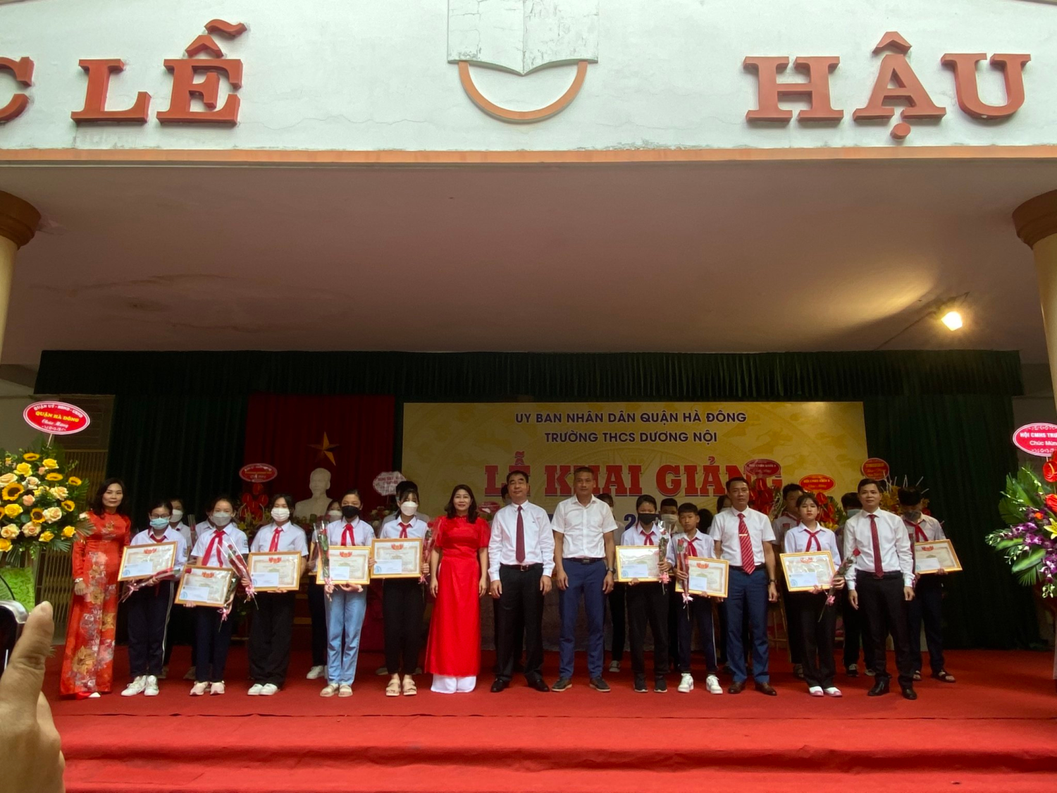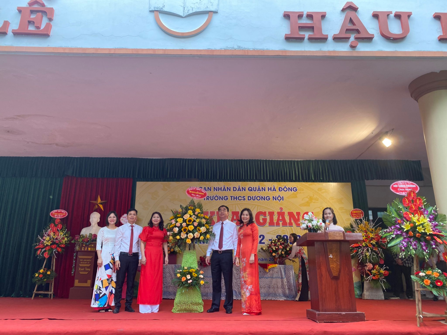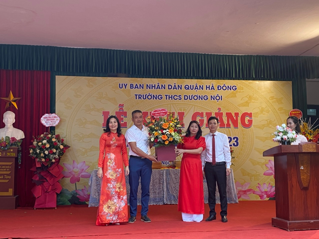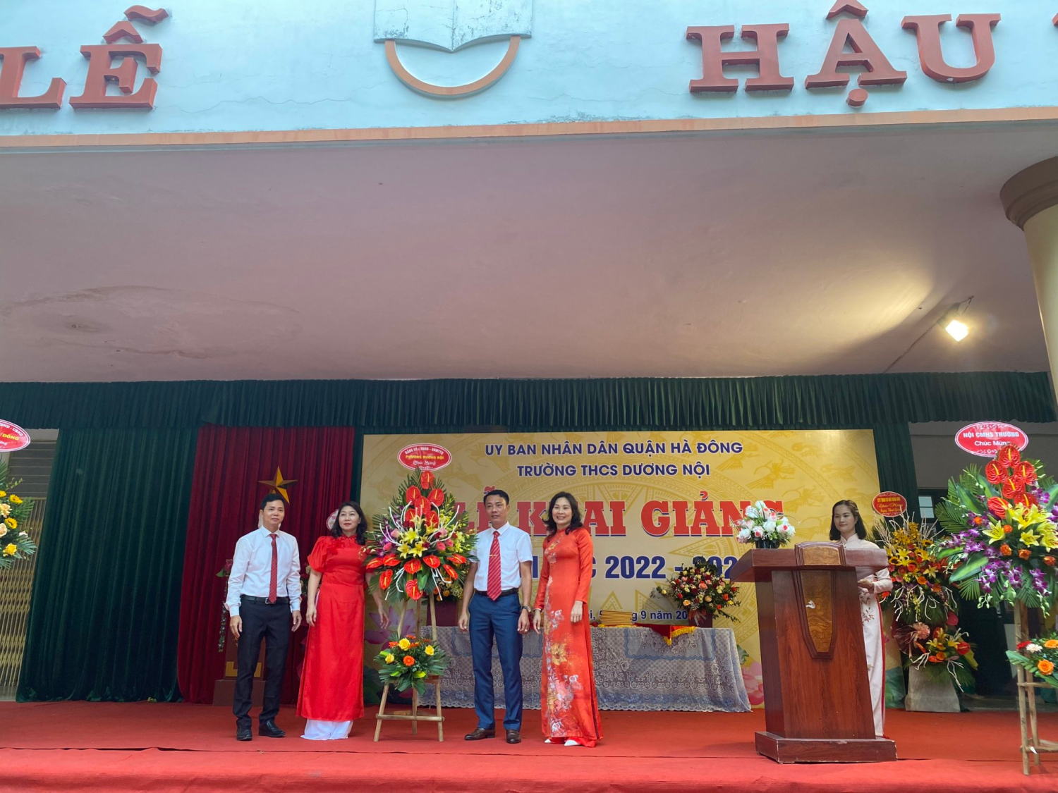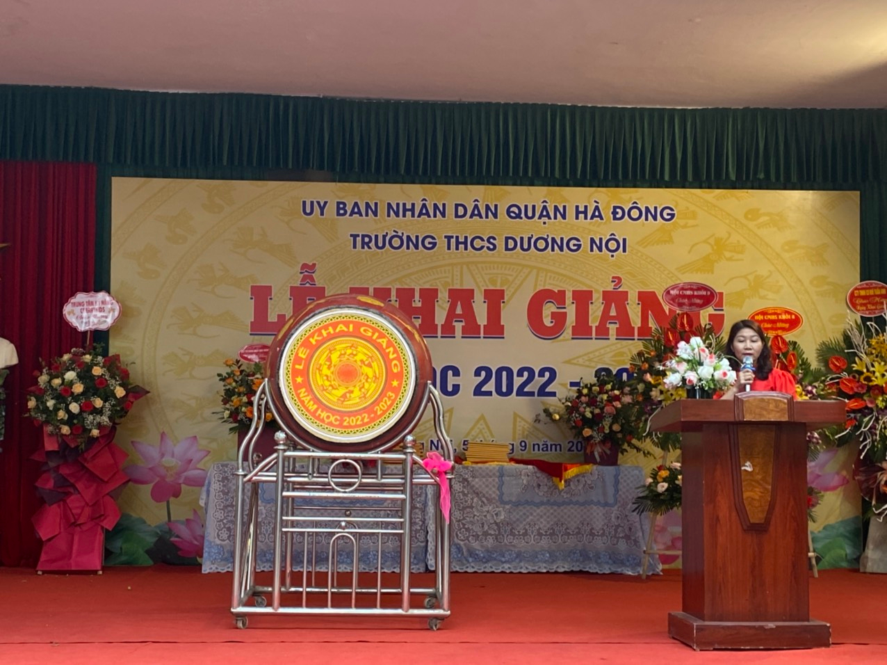 Sau phần nghi lễ, cô giáo Khuất Thị Thắm – Phó Bí thư Chi bộ, Phó hiệu trưởng nhà trường đọc thư Ông Nguyễn Xuân Phúc - Chủ tịch nước Cộng hoã xã hội chủ nghĩa Việt Nam chúc mừng, động viên và nhắn gửi đến các cán bộ giáo viên, các em học sinh sinh viên cả nước nhân ngày Khai giảng năm học mới.Sau đó cô giáo Trần Thị Kim Oanh – Bí thư Chi bộ, Hiệu trưởng nhà trường lên tuyên bố khai giảng và đánh trống khai trường chào năm học mới, năm học 2022 - 2023. Ông Phạm Văn Chiến - Quận uỷ viên, Phó Chủ tịch UBND quận cùng bà Nguyễn Thị Hồng Phương - Chuyên viên Phòng Giáo dục; ông Nguyễn Bá Khánh - Phó Chủ tịch UBND phường; Ông Dương Ngọc Cúc - Chủ tịch HĐQT Quỹ tín dụng nhân dân Dương Nội và các đại biểu trong Lễ khai giảng năm học 2022 - 2023 Cũng trong ngày vui trọng đại này, để khích lệ tinh thần hiếu học và chia sẻ những khó khăn của các em, Hội đồng sư phạm nhà trường đã quyết định trao 9 xe đạp cho các em có hoàn cảnh khó khăn để giúp các em có phương tiện tới trường, dồng thời đó cũng là phần quà ý nghĩa và rất hữu ích tiếp thêm động lực cho các em trên con đường học tập của mình. Bên cạnh đó nhiều năm qua các đơn vị kết nghĩa với nhà trường cũng luôn quan tâm chăm lo cho sự nghiệp giáo dục của địa phương, tiêu biểu là đơn vị Quỹ tín dụng nhân dân Dương Nội cũng tặng 20 suất học bổng cho 20 em học sinh vượt quan hoàn cảnh khó khăn đạt được thành tích cao trong học tập. Đây là một món quà vô cùng ý nghĩa đối với nhà trường trước thềm năm học mới , là một trong những động lực để học trò trường THCS Dương Nội phấn đấu thi đua nhiều hơn trong học tập góp phần xây dựng truyền thống gần 60 năm nhà trường xây dựng phát triển và trưởng thành.Ông Phạm Văn Chiến - Phó Chủ tịch UBND quận, cùng bà Nguyễn Thị Hồng Phương - Chuyên viên Phòng Giáo dục tặng hoà BGH nhà trường trong Lễ Khai giảng năm học 2022-2023Ông Nguyễn Bá Khánh- Phó Chủ tịch UBND phường tặng hoa Ban giám hiệu nhà trường trong Lễ khai giảng năm học 2022-2023Ông Dương Ngọc Cúc - Chủ tịch HĐQT Quỹ tín dụng nhân dân Dương Nội cùng Ban Giám hiệu nhà trường
