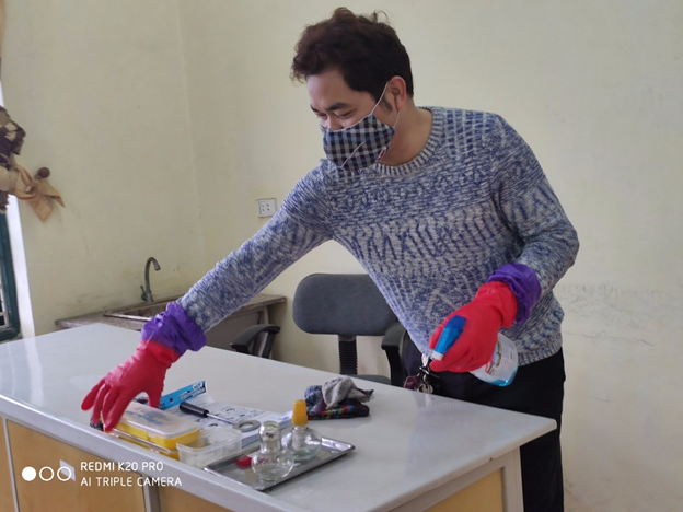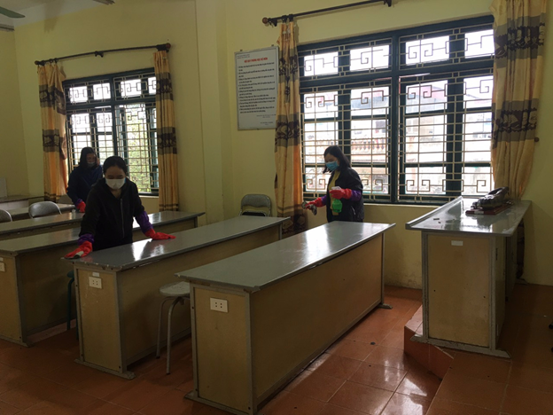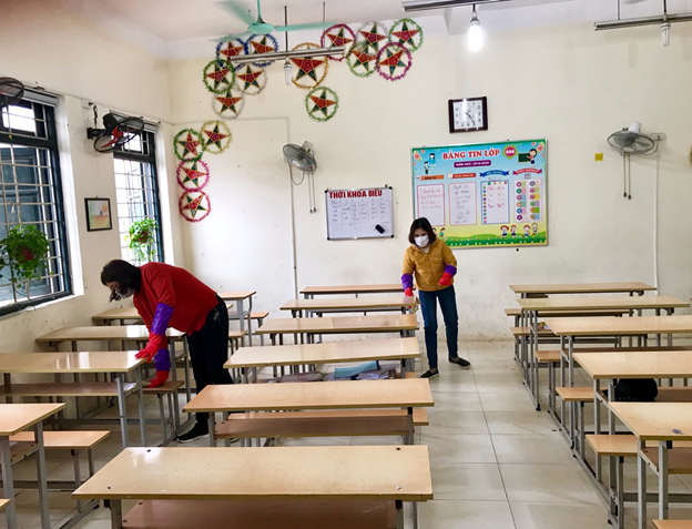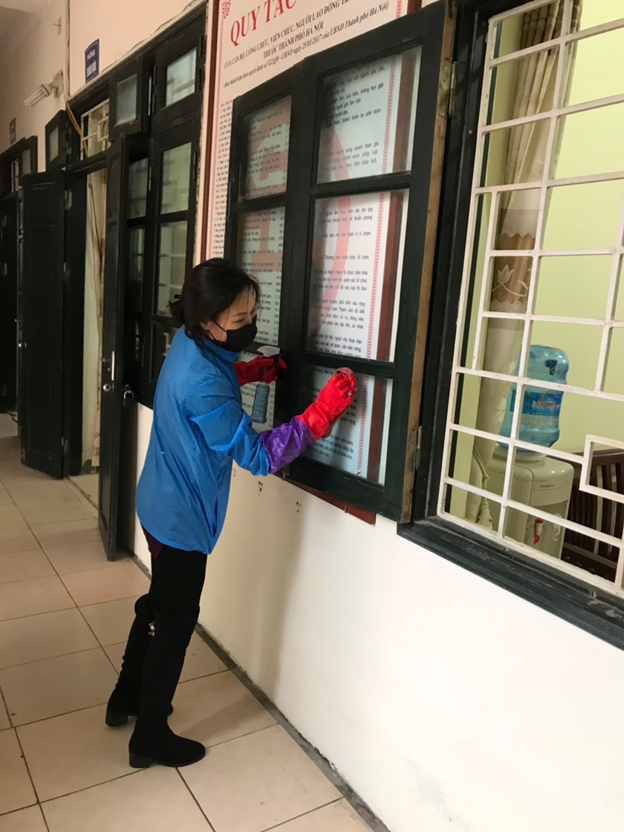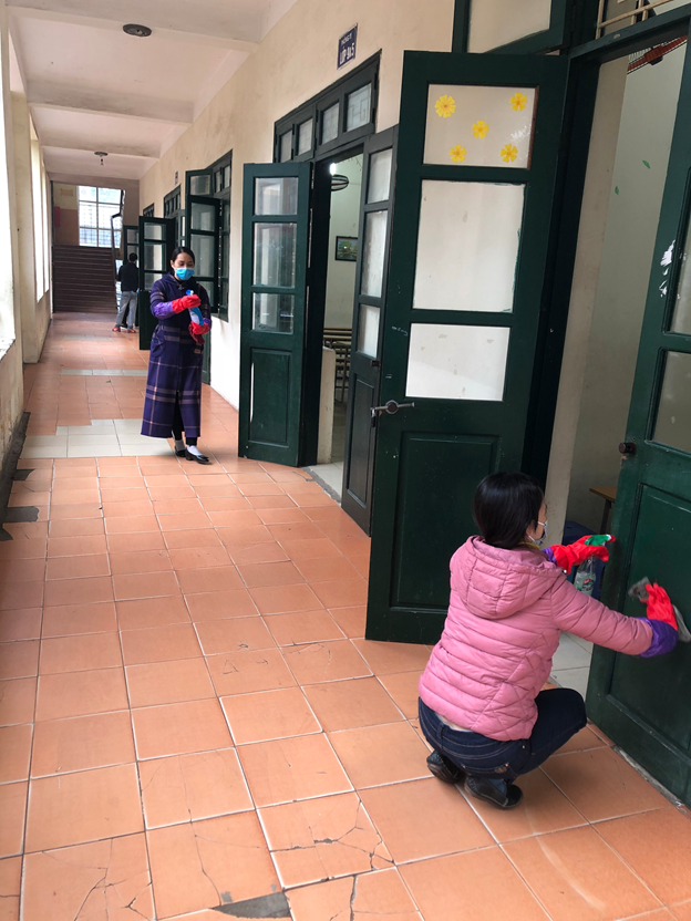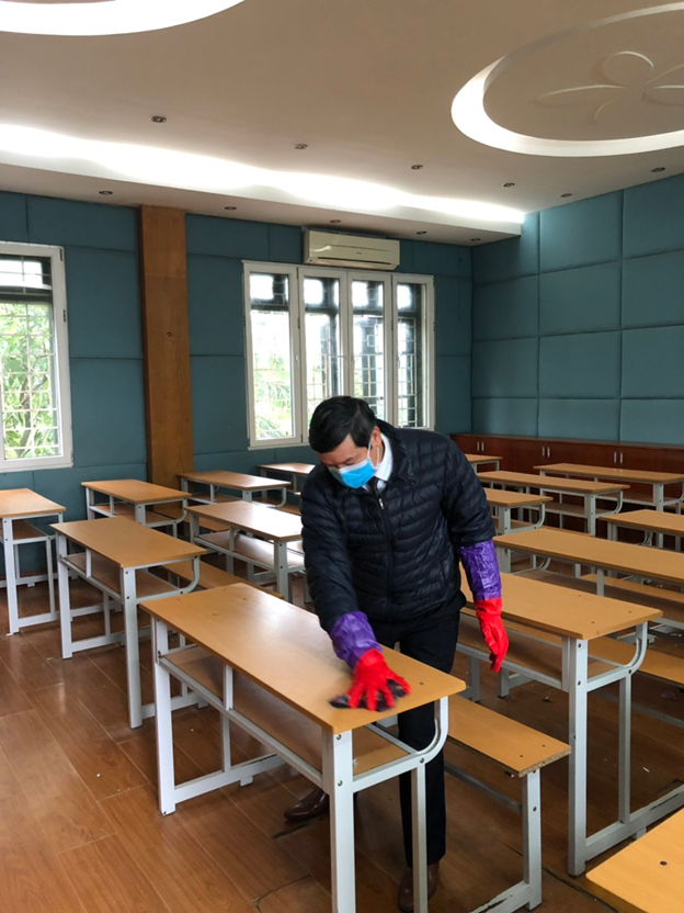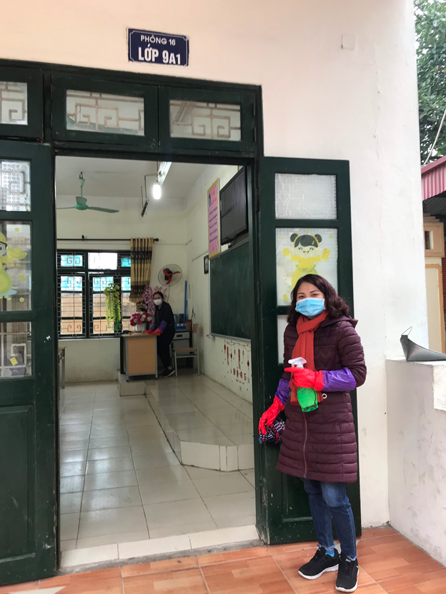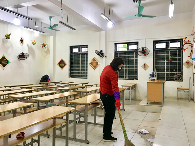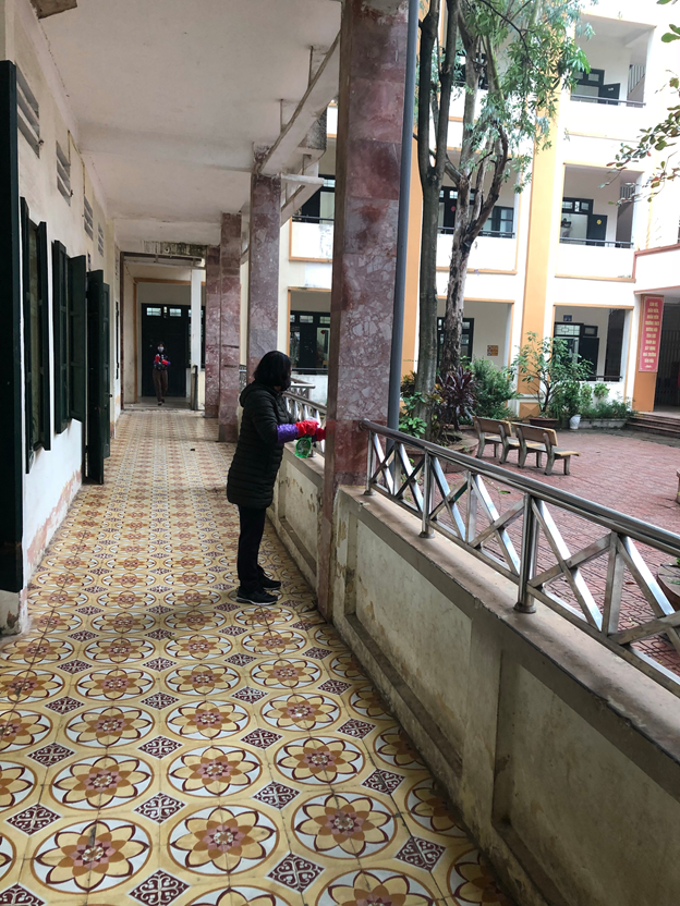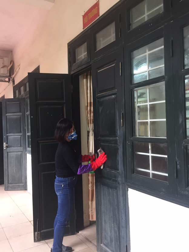 Từ 9h sáng, Ban giám hiệu, giáo viên, nhân viên trường THCS Dương Nội đã có mặt thực hiện tổng vệ sinh trong và ngoài lớp học, khu hiệu bộ và toàn bộ khuôn viên nhà trường.