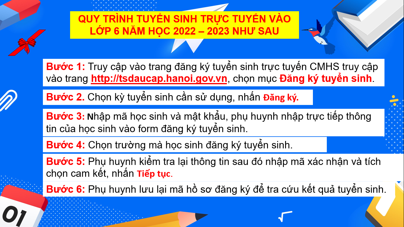 HƯỚNG DẪN ĐĂNG KÍ TUYỂN SINH LỚP 6 NĂM HỌC 2022 - 2023
