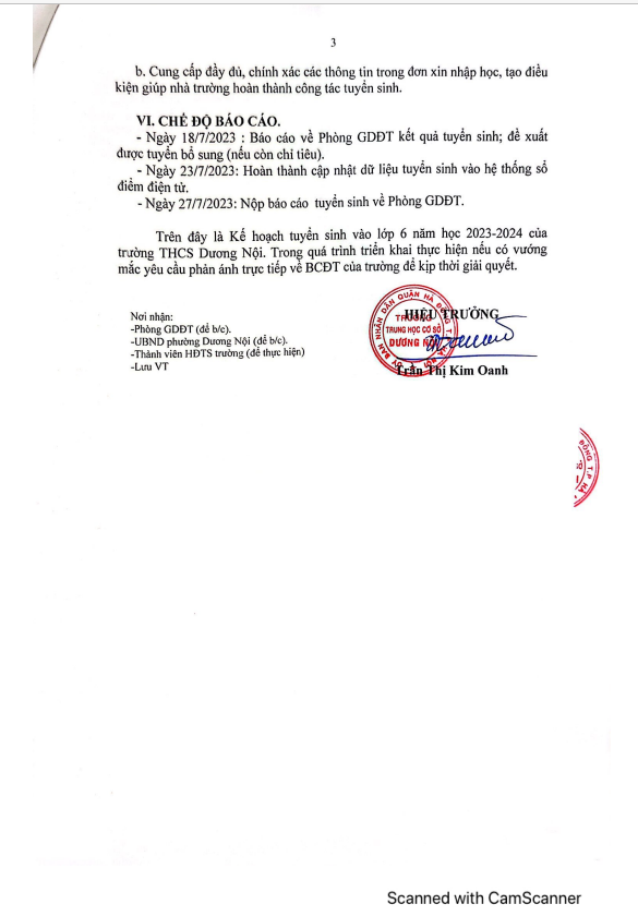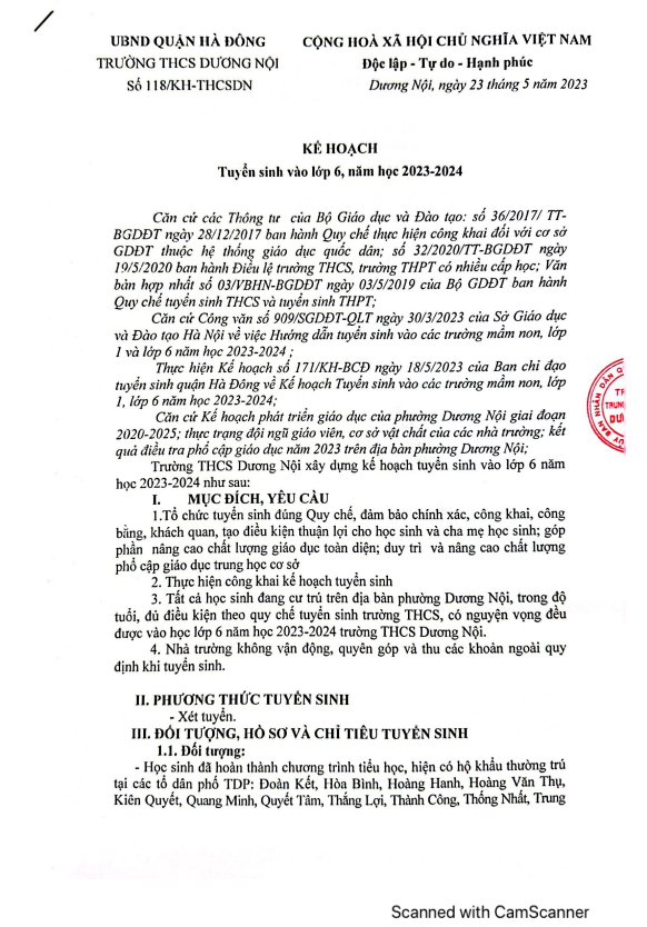 kế hoạch tuyển sinh lớp 6 năm học 2023-2024 như sau