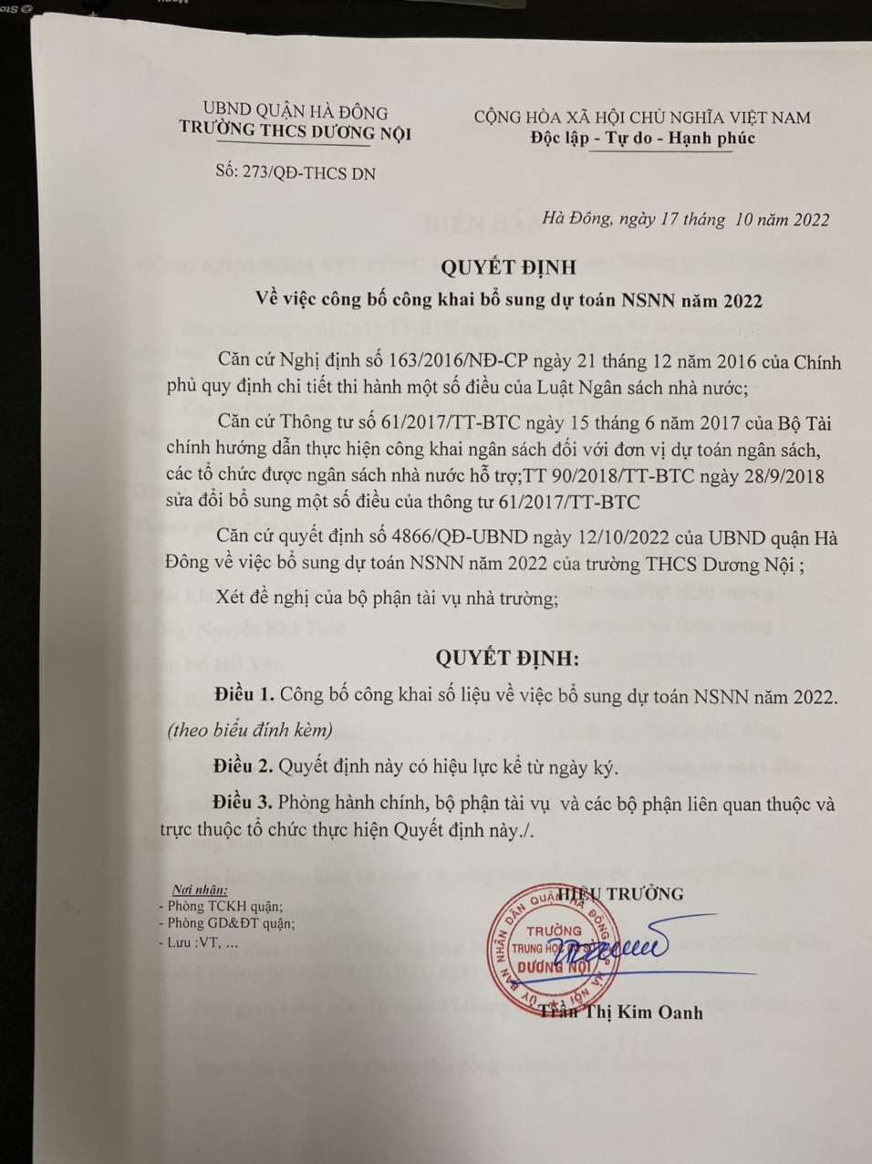 Số kí hiệu:Số 273/QĐ-THCSDN