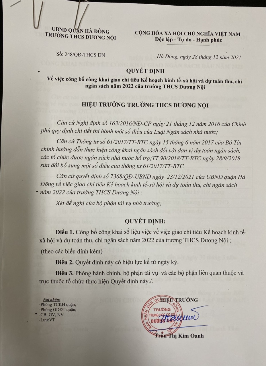 Số kí hiệu:Số 248/QĐ-THCSDN