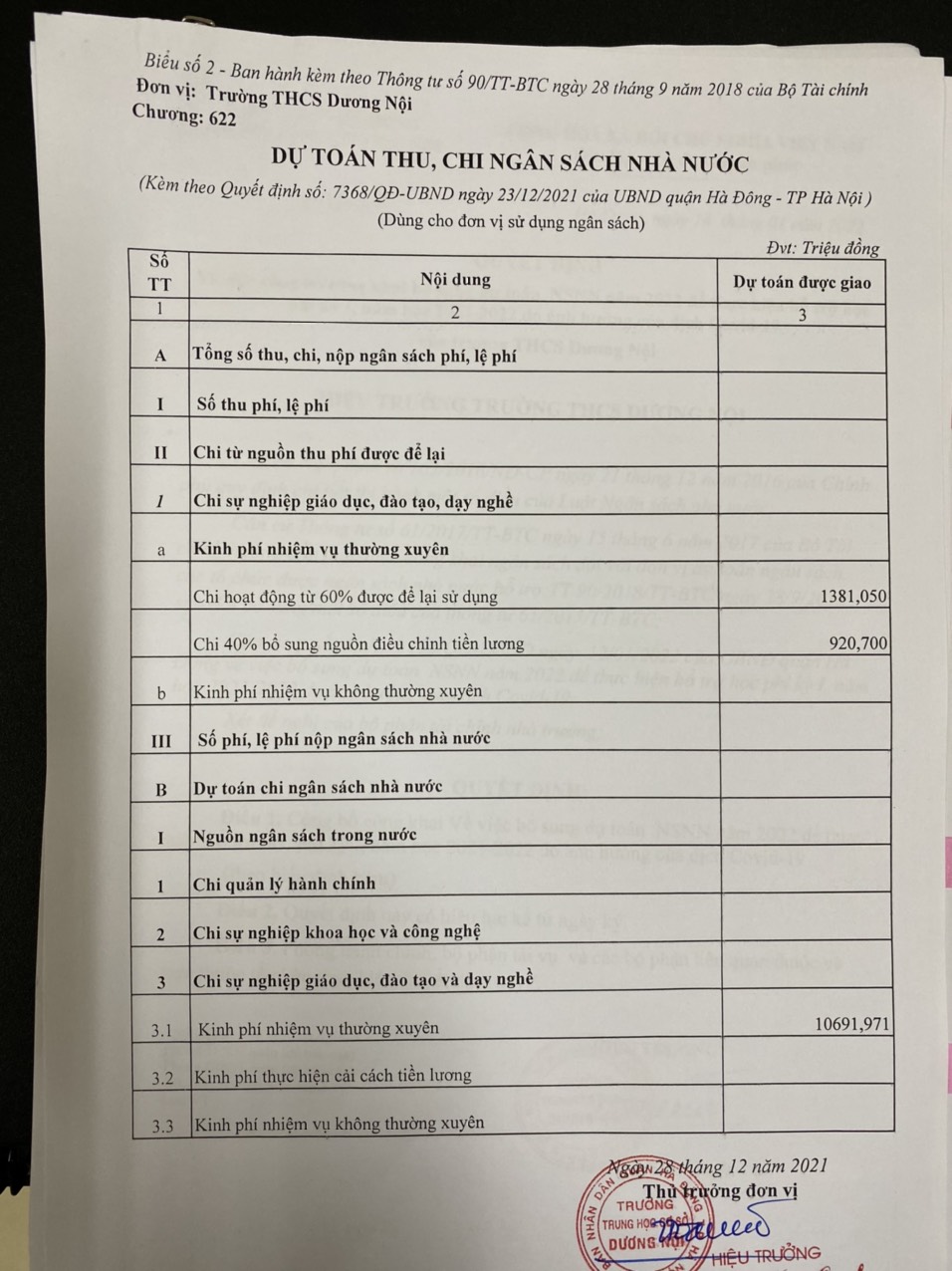 Số kí hiệu:Số 285/QĐ-THCSDN
